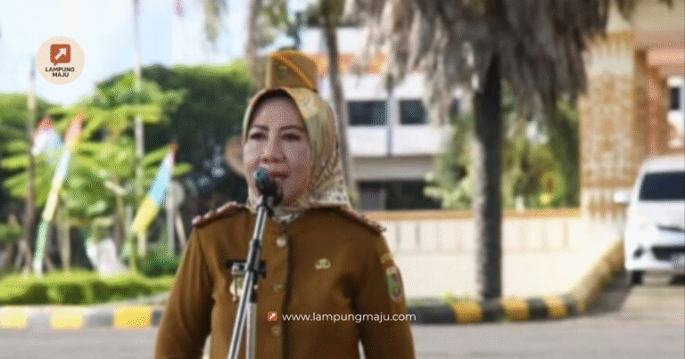Sekretaris DPRD Provinsi Lampung, Ibu Hj. Tina Malinda, S.Sos., MM. memimpin apel pagi sekaligus Halal Bihalal