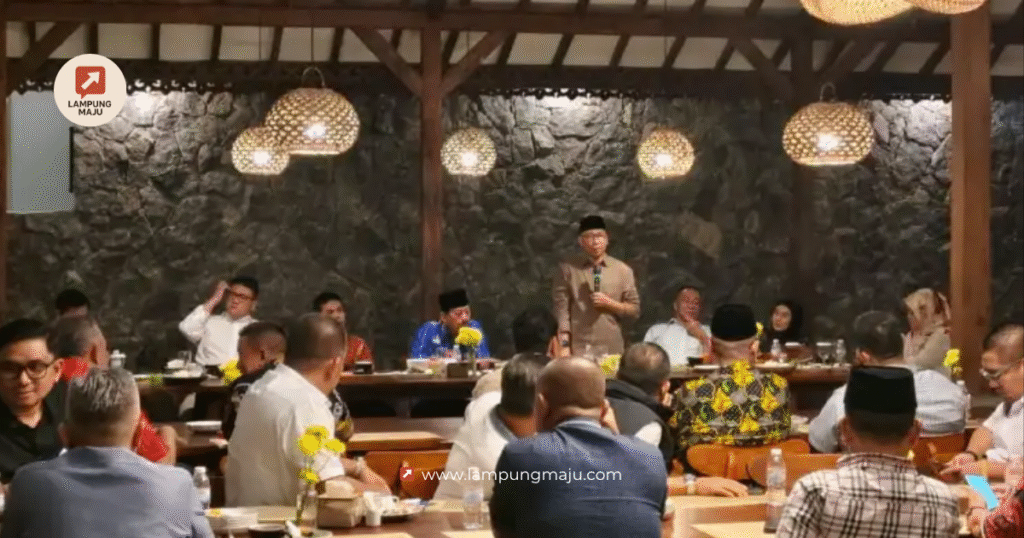 Bandar Lampung, sinarlampung.co – Gubernur Lampung Rahmat Mirzani Djausal menggelar pertemuan perdana bersama para ketua partai politik se-Provinsi Lampung di Cafe Joglo Watu, Sukarame, Bandar Lampung, Senin malam, (4/8/2025).