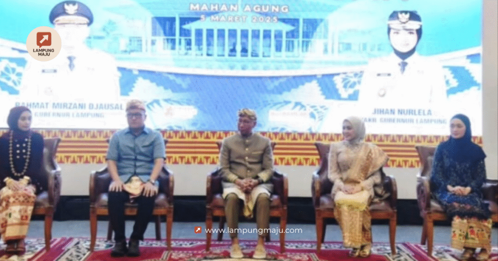 Ketua DPRD Provinsi Lampung Bapak Ahmad Giri Akbar, SE., MBA. dan Ibu Irene Fransisca, para Pimpinan, Anggota DPRD Provinsi Lampung serta Sekretaris DPRD Provinsi Lampung, menghadiri acara Tradisi Lampung berpadu dalam penyambutan Gubernur baru Periode 2025 – 2030, “NGANTAK GUBERNUR BUKA BELANGAN.” yang menggabungkan budaya Sebatin dan Pepadun, acara ini menjadi simbol persatuan dan penghormatan, sekaligus harapan masyarakat untuk inovasi, pelestarian Budaya, dan kemajuan Lampung dibawah Kepemimpinan Baru, Lampung Maju menuju Indonesia Emas 2045.