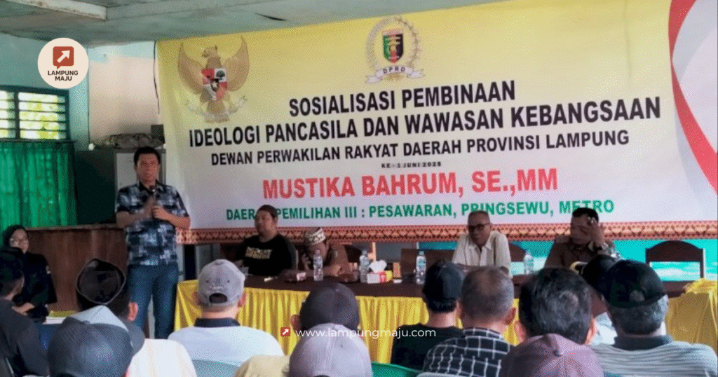 Anggota DPRD Provinsi Lampung, Mustika Bahrum, menggelar kegiatan sosialisasi Pembinaan Ideologi Pancasila dan Wawasan Kebangsaan di Desa Cimanuk, Kecamatan Way Lima, Kabupaten Pesawaran, Selasa (3/6/2025).