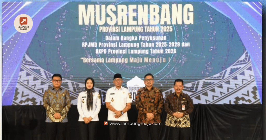 Ketua DPRD Lampung Bapak Ahmad Giri Akbar, SE., MBA, bersama Sekretaris DPRD Provinsi Lampung Ibu Hj. Tina Malinda, S.Sos., MM. Menghadiri undangan Musyawarah Perencanaan Pembangunan (MUSRENBANG) Provinsi Lampung Tahun 2025 Dalam Rangka Penyusunan RPJMD Tahun 2025-2029 dan RKPD Provinsi Lampung Tahun 2026, dengan tema ‘Bersama Lampung Maju Menuju Indonesia Emas’. Bertempat di Auditorium Lt.4 Kantor Perwakilan Bank Indonesia Provinsi Lampung. Rabu, (7/5/2025)
