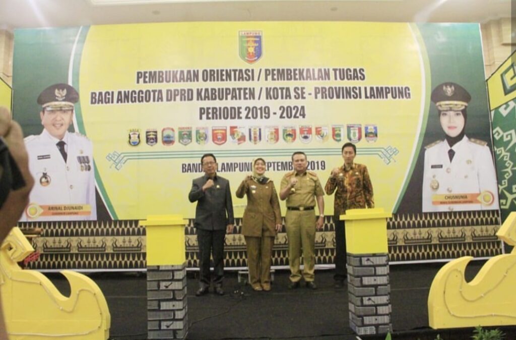 Ketua DPRD Provinsi Lampung, Mingrum Gumay, S.H., M.H. menghadiri acara Pembukaan Orientasi/Pembekalan Tugas bagi Anggota DPRD Kabupaten/Kota se-Provinsi Lampung Periode 2019-2024 yang diadakan di Swiss Bell Hotel Bandar Lampung