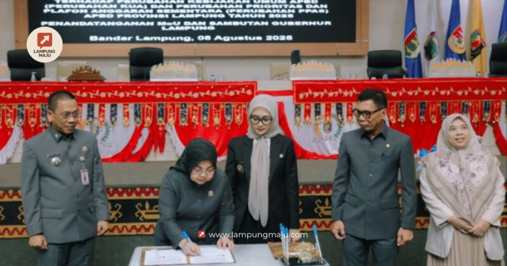 BANDARLAMPUNG — Pemerintah Provinsi Lampung bersama DPRD Provinsi Lampung melakukan penandatanganan Nota Kesepahaman (MoU) Kebijakan Umum APBD (KUA) dan Prioritas dan Plafon Anggaran Sementara (PPAS) APBD Provinsi Lampung Tahun Anggaran 2026.
