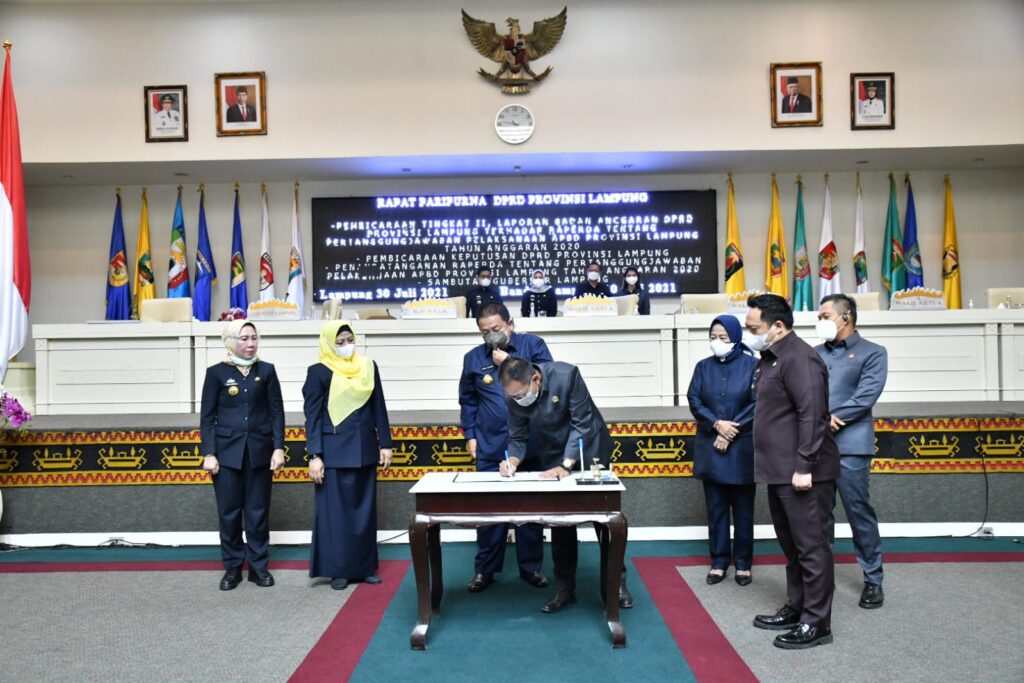 Dewan Perwakilan Rakyat Daerah (DPRD) Provinsi Lampung melangsungkan kegiatan Rapat Paripurna dengan agenda Pembicaraan Tingkat II Laporan Badan Anggaran DPRD Provinsi Lampung Terhadap Raperda tentang Pertanggungjawaban Pelaksanaan APBD Provinsi Lampung Tahun Anggaran 2020, Pembicaraan Keputusan DPRD Provinsi Lampung, Penandatanganan Raperda tentang Pertanggungjawaban Pelaksanaan APBD Provinsi Lampung Tahun Anggaran 2020 dan Sambutan Gubernur Lampung.