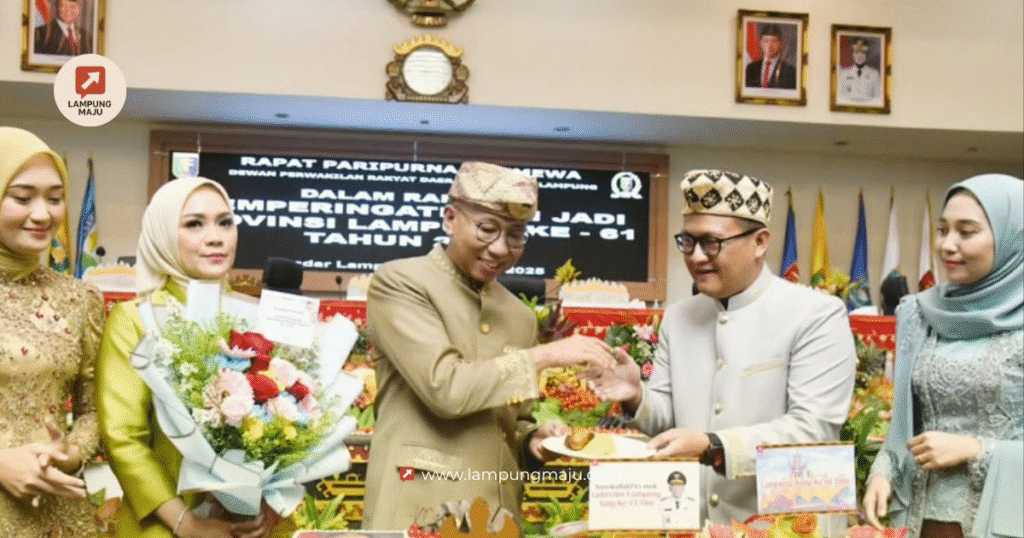 Rapat Paripurna Istimewa Dewan Perwakilan Rakyat Daerah Provinsi Lampung dalam rangka memperingati hari jadi Provinsi Lampung ke – 61 tahun 2025. Lampung Tanggung, Berbudaya dan Berhimpun.
