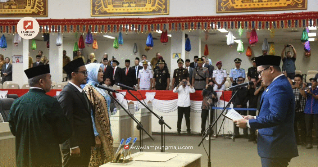 Ketua DPRD Provinsi Lampung, Bapak Ahmad Giri Akbar, SE., MBA. memimpin jalannya Rapat Paripurna Istimewa DRPD Provinsi Lampung dalam Rangka Peresmian Pemberhentian dan Pengangkatan Pengganti Antar Waktu (PAW) Anggota DPRD Provinsi Lampung Fraksi Partai Kebangkitan Bangsa (PKB) Ibu Yus Bariah digantikan oleh Bapak Abdul Azis & Fraksi Partai Amanat Nasional (PAN) Bapak Teddy Kurniawan digantikan oleh Ibu Imelda pada sisa masa jabatan 2024-2029. Bertempat di Ruang Rapat Paripurna DPRD Provinsi Lampung. Senin, (21/4/2025)