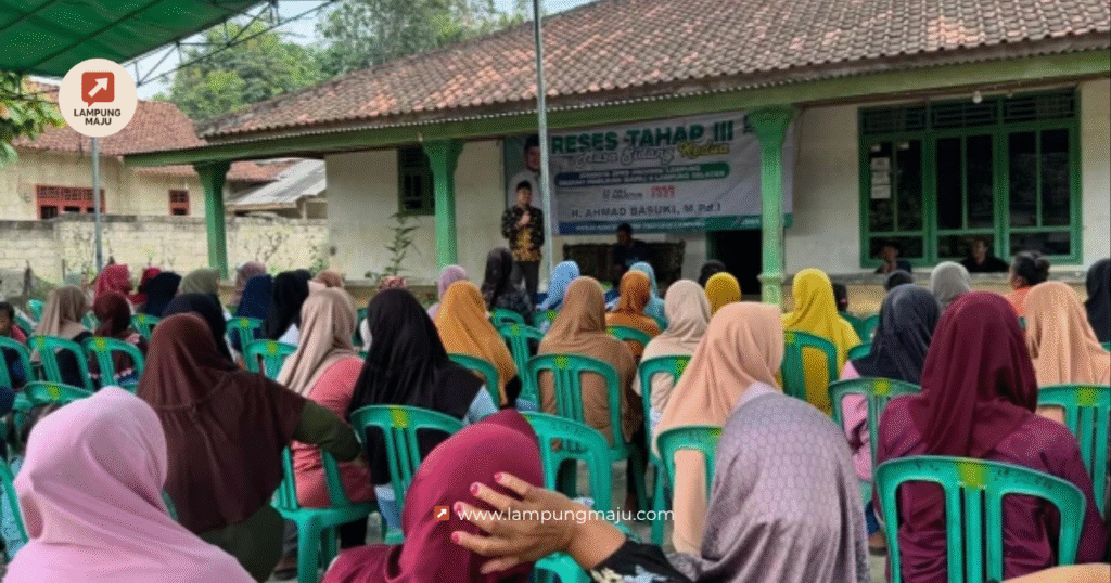 Anggota DPRD Provinsi Lampung Dapil Lampung Selatan, Ahmad Basuki, turun langsung ke Desa Sukadamai, Kecamatan Natar, dalam rangka kegiatan reses, Rabu (30/7/2025). Dalam kesempatan itu, ia menyerap berbagai aspirasi masyarakat, khususnya dari kalangan petani dan penerima bantuan sosial. Salah satu keluhan utama yang disampaikan warga adalah terkait belum tersedianya jaringan aliran listrik untuk lahan pertanian. Hal ini menyulitkan petani yang masih menggunakan mesin penyedot air berbahan bakar solar.