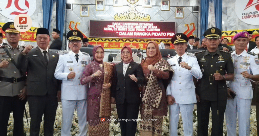 Wakil Ketua I DPRD Provinsi Lampung Ibu. Kostiana, S.E., M.H. Menghadiri Undangan Rapat Paripurna Istimewa DPRD Kabupaten Lampung Utara dalam Rangka Penyampaian Visi dan Misi Bupati Lampung Utara Masa Jabatan 2025-2030, Dilanjutkan Dengan Acara Apresiasi Budaya & Ramah Tamah Bupati dan Wakil Bupati Kabupaten Lampung Utara Masa Jabatan 2025-2030 di Rumah Dinas Bupati Lampung Utara.