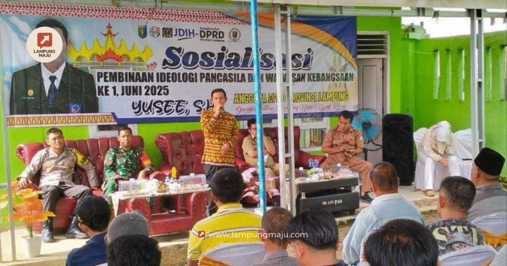 Lampung , – Anggota DPRD Provinsi Lampung dari fraksi Nasdem. Yusee mensosialisasikan pembinaan ideologi Pancasila dan wawasan kebangsaan di kantor Kampung Banjar Masin kecamatan Baradatu Kabupaten Way Kanan, Senin(16/6/2025).